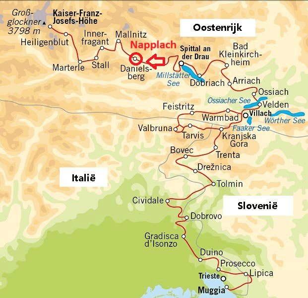 The Alpe Adria Trail is a fully marked, diverse hiking route with 43 stages through 3 Alpine countries: Austria, Italy, and Slovenia. This 750 km long route starts from the Großglockner, the highest mountain in Austria, passing through the Julian Alps in Slovenia and leading to the Adriatic Sea in Italy.